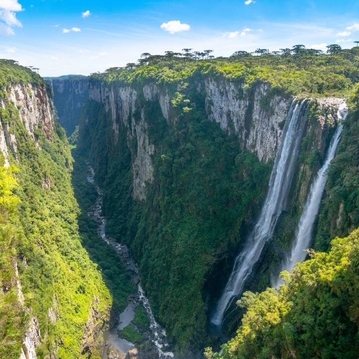 Na serra gaúcha, Cambará do Sul guarda os cânions mais impressionantes do Brasil. O Itaimbezinho e o Fortaleza estão entre os maiores da América do Sul, com paredões que ultrapassam 700 metros de altura.
