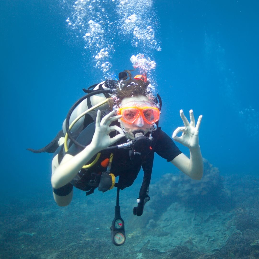 Mesmo quem nunca mergulhou pode realizar o chamado mergulho de batismo, onde o instrutor conduz a experiência de forma segura.