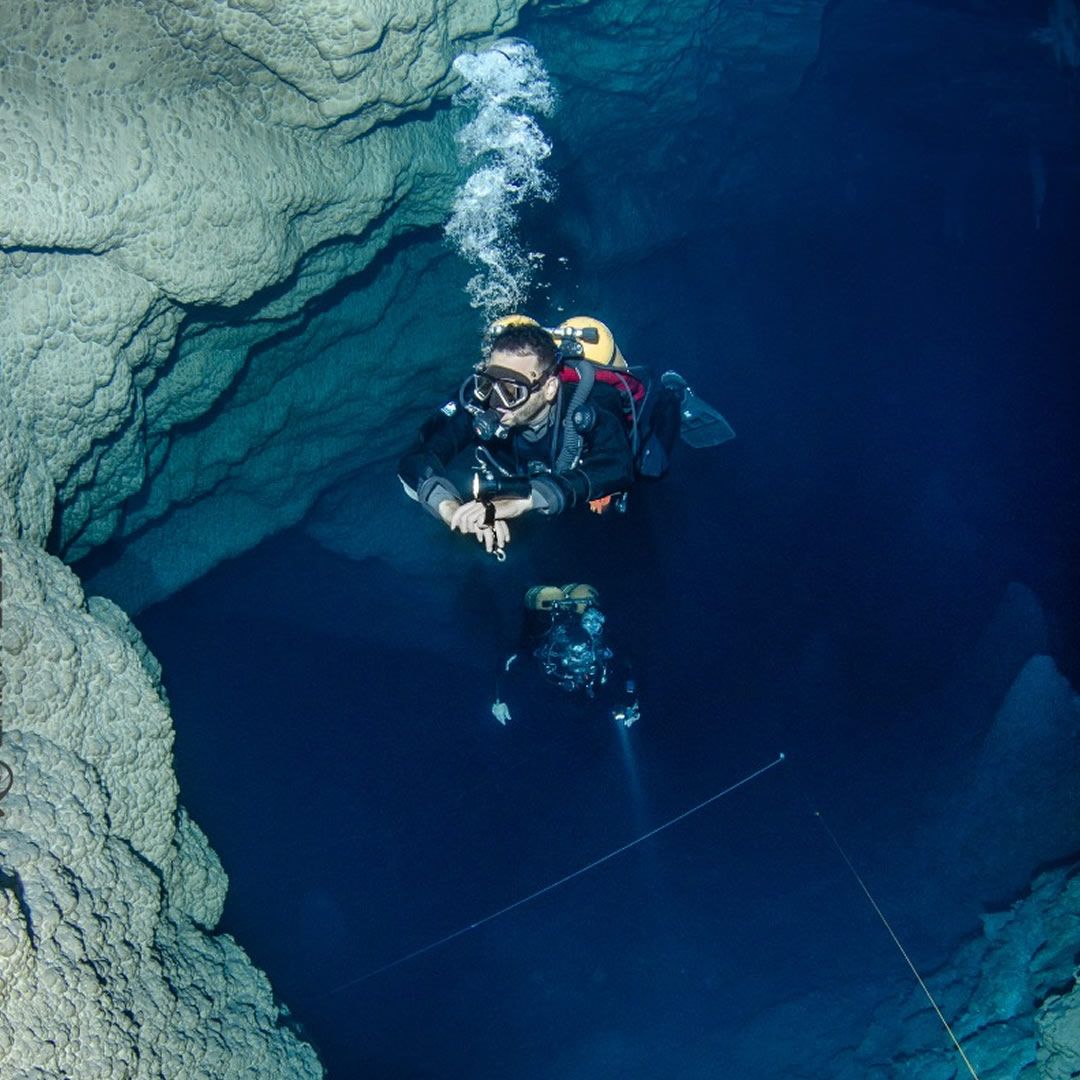 Lá dentro existe um lago subterrâneo onde é realizado o mergulho.